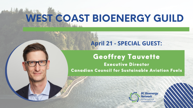 BC Bioenergy Network (BCBN) invites you to attend the West Coast Bioenergy Guild, with special guest Geoffrey Tauvette, Executive Director at the Canadian Council for Sustainable Aviation Fuels (C-SAF).